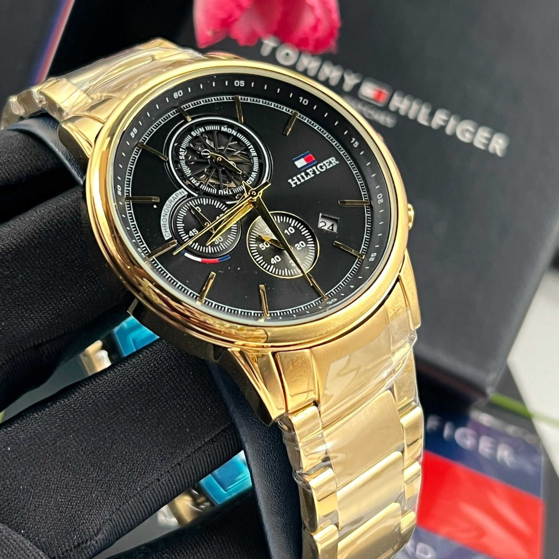 Montre Tommy Hilfiger Homme – Éclat Doré & Élégance Noire