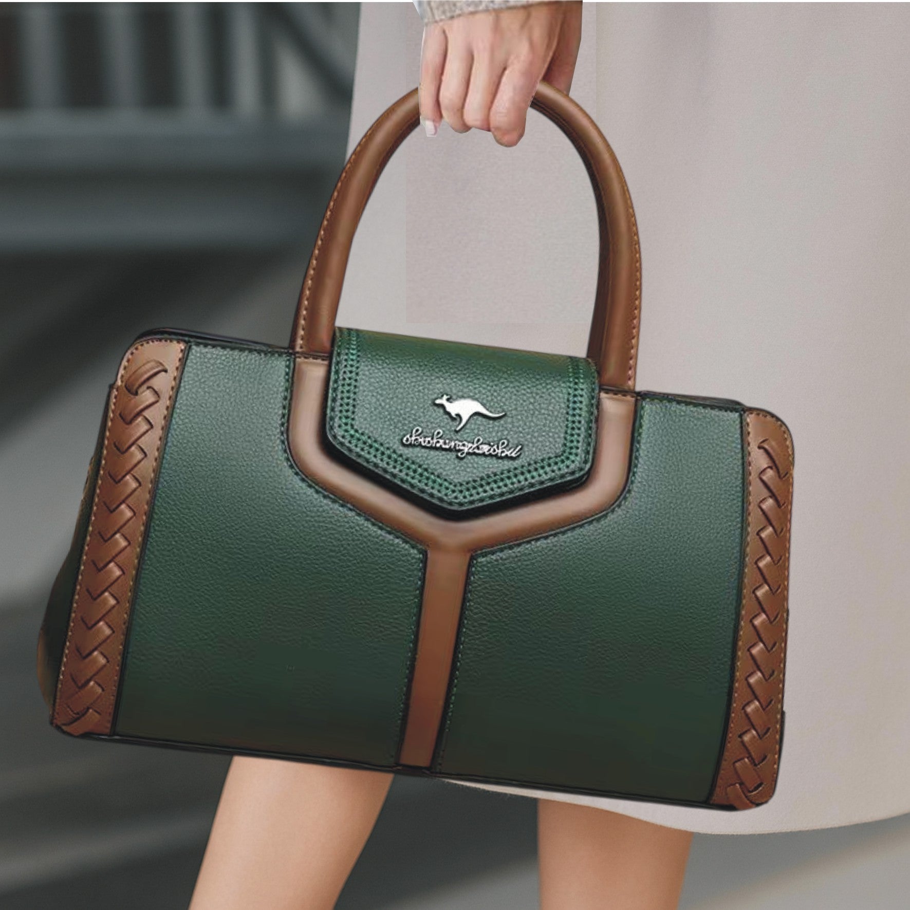 Petit Sac à Main Élégant – Design Bicolore Vert & Marron