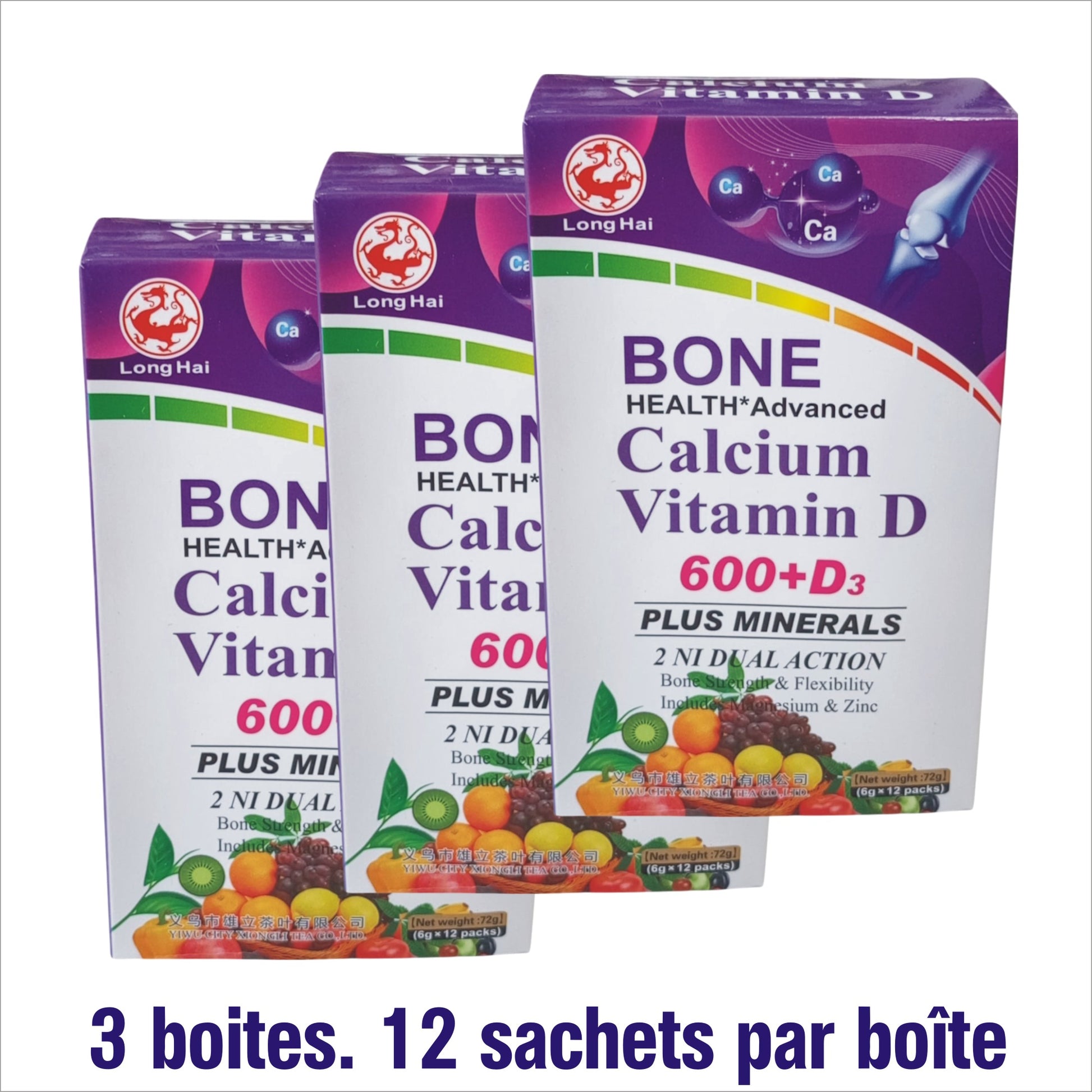Bone Health – Calcium + Vitamine D3 + Minéraux (3 boîtes – 36 sachets)
